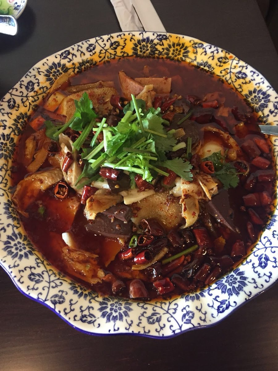 The menu reads like a tour through Chengdu kitchens rather than a generic takeout list. You’ll find cumin lamb, dry pot cauliflower, and fish fillets swimming in chili oil, all dishes rooted in regional cooking techniques. One of the cooks explained during a quieter afternoon that many recipes rely on oil temperature control and spice blooming, where chilies and aromatics are fried briefly to release flavor without bitterness. That attention to process is something you taste immediately. It’s the difference between heat for shock value and heat that actually enhances the dish.